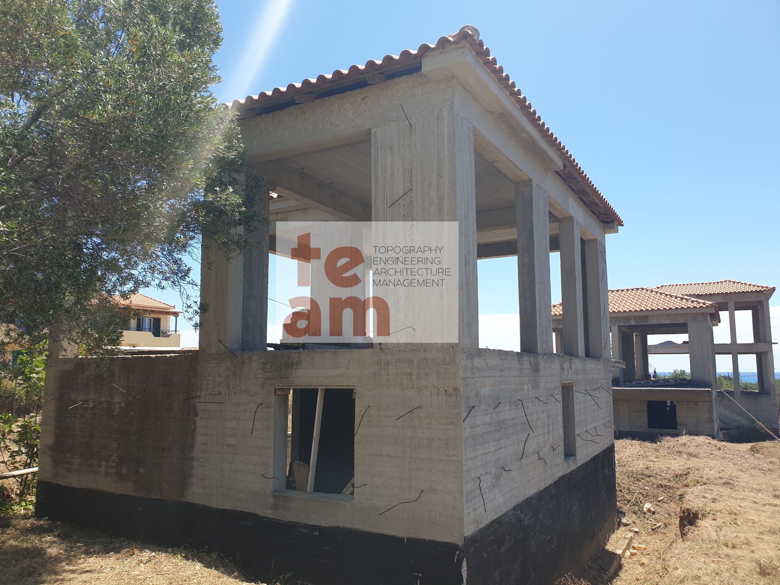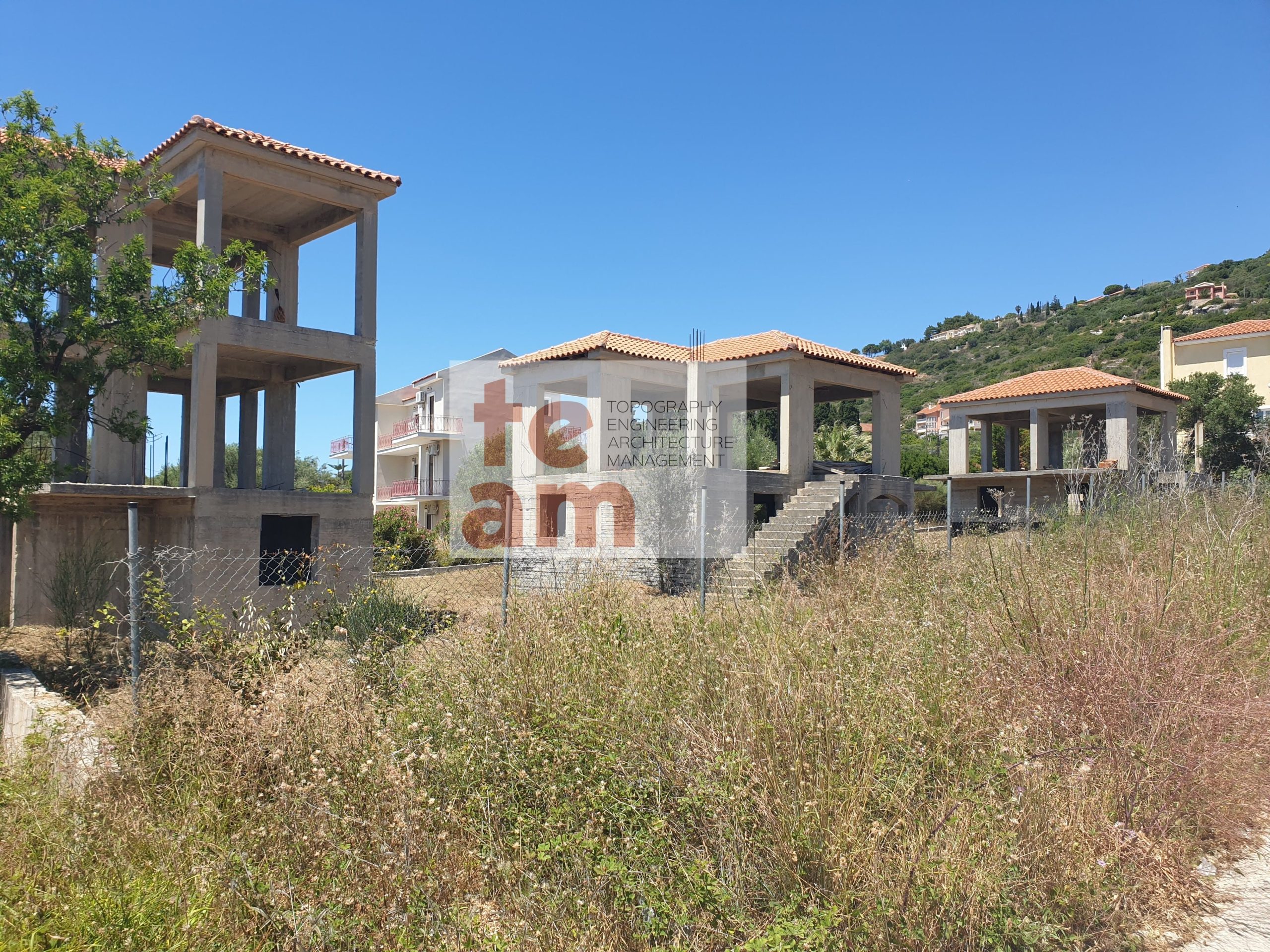 Το πρώτο κτίριο (διώροφη μονοκατοικία) έχει συνολική επιφάνεια 117,66 τ.μ. με ισόγειο, α’ όροφο, υπόγειο χώρο και ημιυπόγειο χώρο ισογείου. Το δεύτερο κτίριο (ισόγειος μονοκατοικία) έχει συνολική επιφάνεια 94,34 τ.μ. με ισόγειο και υπόγειο. Το τρίτο κτίριο (ισόγειος μονοκατοικία) έχει συνολική επιφάνεια 94,34 τ.μ. με ισόγειο και υπόγειο. Ακόμη, το οικόπεδο προσφέρει τη δυνατότητα κατασκευής πισίνας.